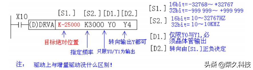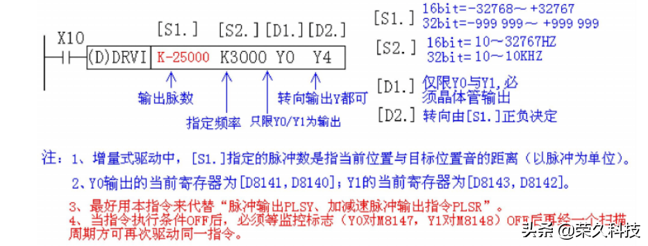 DRVI为单速增量驱动方式脉冲输出指令。这个指令与脉冲输出指令类似但又有区别,