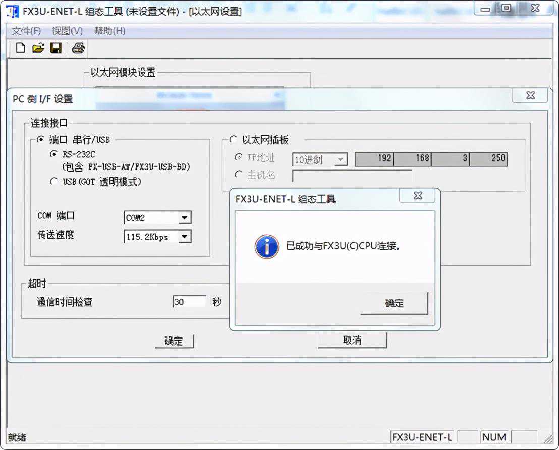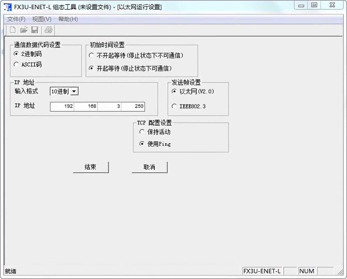 最近有个项目要使用FX3UPLC的网络通讯功能,配了一个FX3U-ENET-L网络模块。调试过程记录如下。
