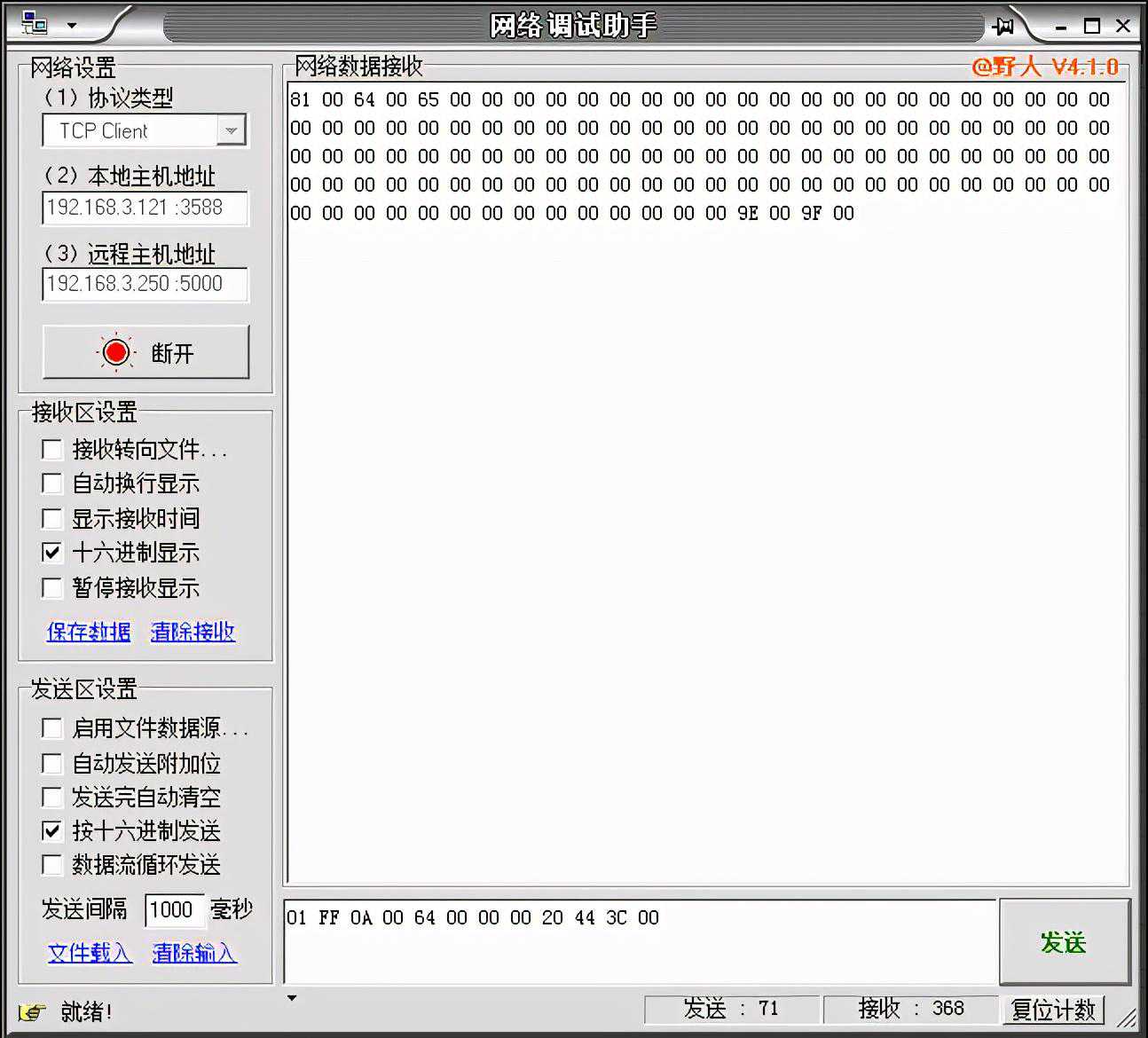 发送指令:01FF0A00643C00