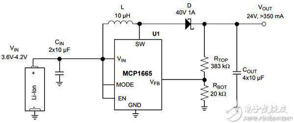 在为智能手机摄像头闪光灯或电池供电的LED灯产生更高的电压方面,MicrochipTechnology的MCP1665采用了不同的方法:它集成了36伏特、100毫欧(mΩ)的NMOS电源开关,但在非同步拓扑中使用了外部二极管。