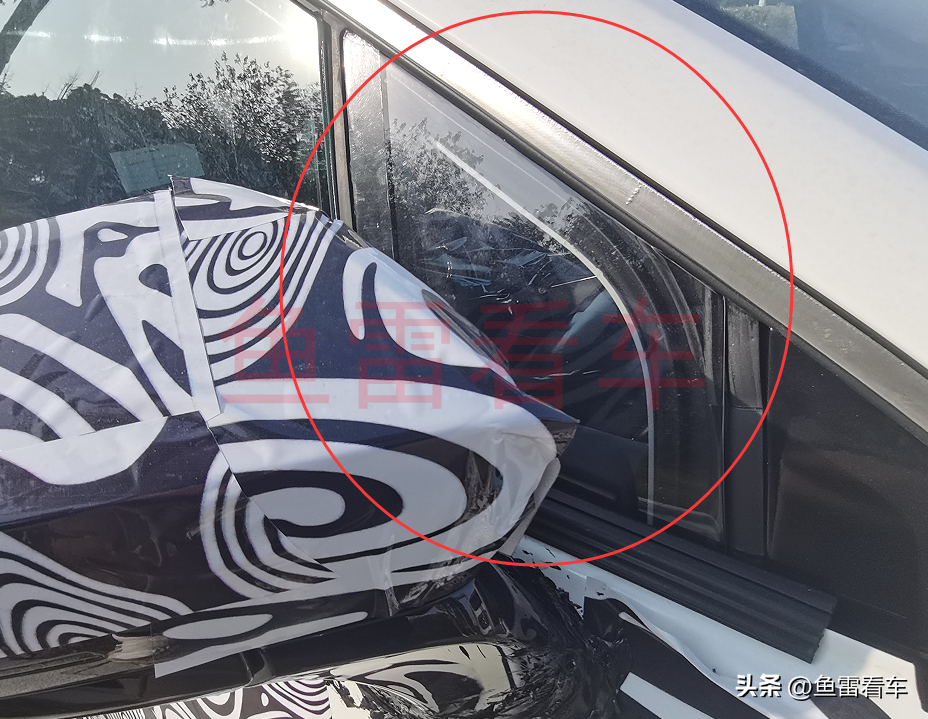 至于C柱三角侧窗,看一个侧围就可以了,与E03确实完全不同,底端完全是平直的,类似奔驰那种风格,相当犀利,从这个细节也能看出与E03并非一个风格,两者虽说平台共享车身结构相同,但是细节差异很大,非常易于识别。