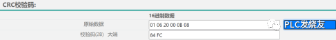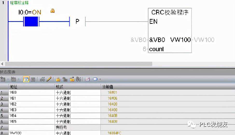 验证一:写入数据到VB0至VB5中,CRC效验值存储在VW100中