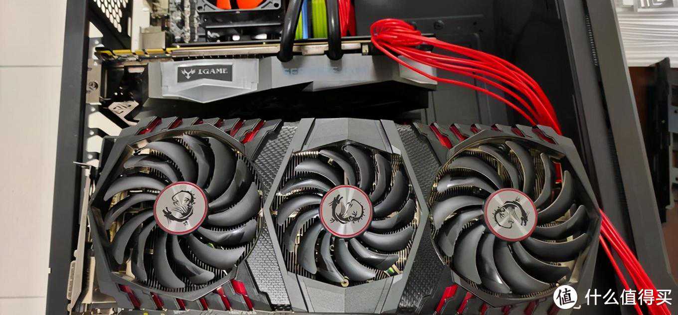 再说说红龙,是1080ti系里少见的双风扇设计,和魔龙同属高端卡组,感觉比魔龙要好看不少,没有RGB灯效。虽然是双风扇设计,但是风扇尺寸大了一圈,散热能力丝毫没有变弱。