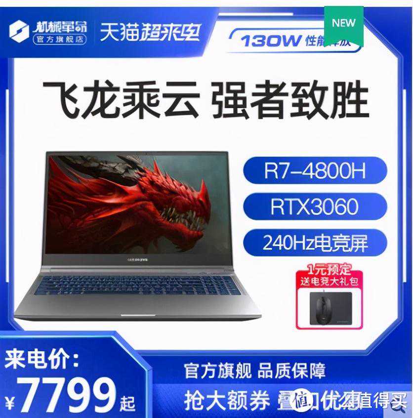 蛟龙5-76S(R7-4800H/RTX3060/100%sRGB/240Hz电竞屏/15.6英寸),领券+金币立减最后优惠可以做到7421到手。
