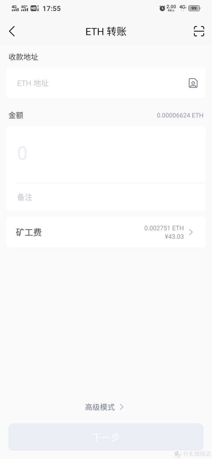 这里收款地址填火币Pro提币给的地址。金额要手动填,这里需要减一下矿工费,也就是充币手续费。