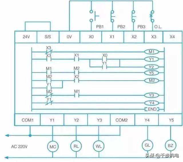 使用plc,就是以软件程序来取代硬件配线。传统电工图当中,主电路是plc无法取代的;plc可以取代的部份,是控制电路。由传统电工图转换为阶梯图的第一个步骤,就是i/o编码,亦即将传统电工图中的输入/输出组件,先行确定其在plc中所拟对应之外部输入/输出端子编号,以及外部输入组件接线方式是采用a/b接点。