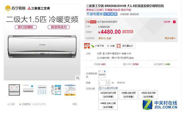 三菱重工空调SRKEKB35HVB天猫售价4480元