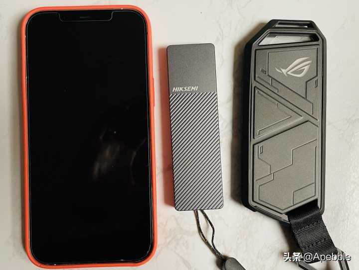 外观重量对比整体外观从尺寸上看,ROGSTRIXARION要比海康大一圈,下面的照片是两者和iPhone12ProMax的对比图