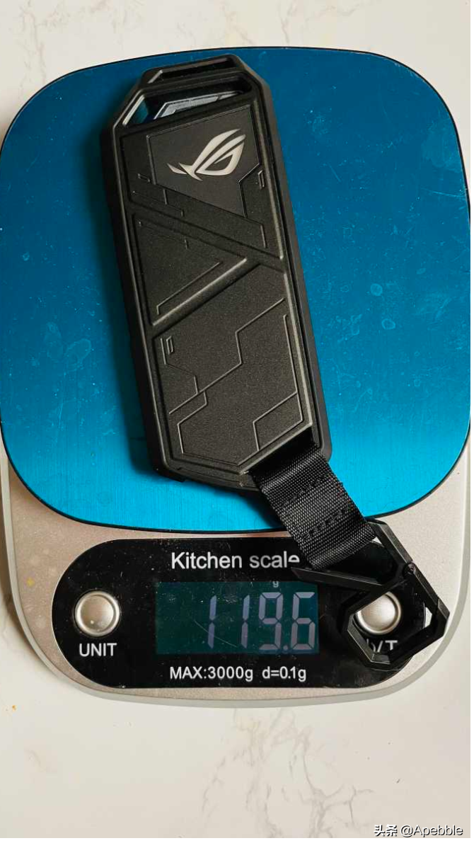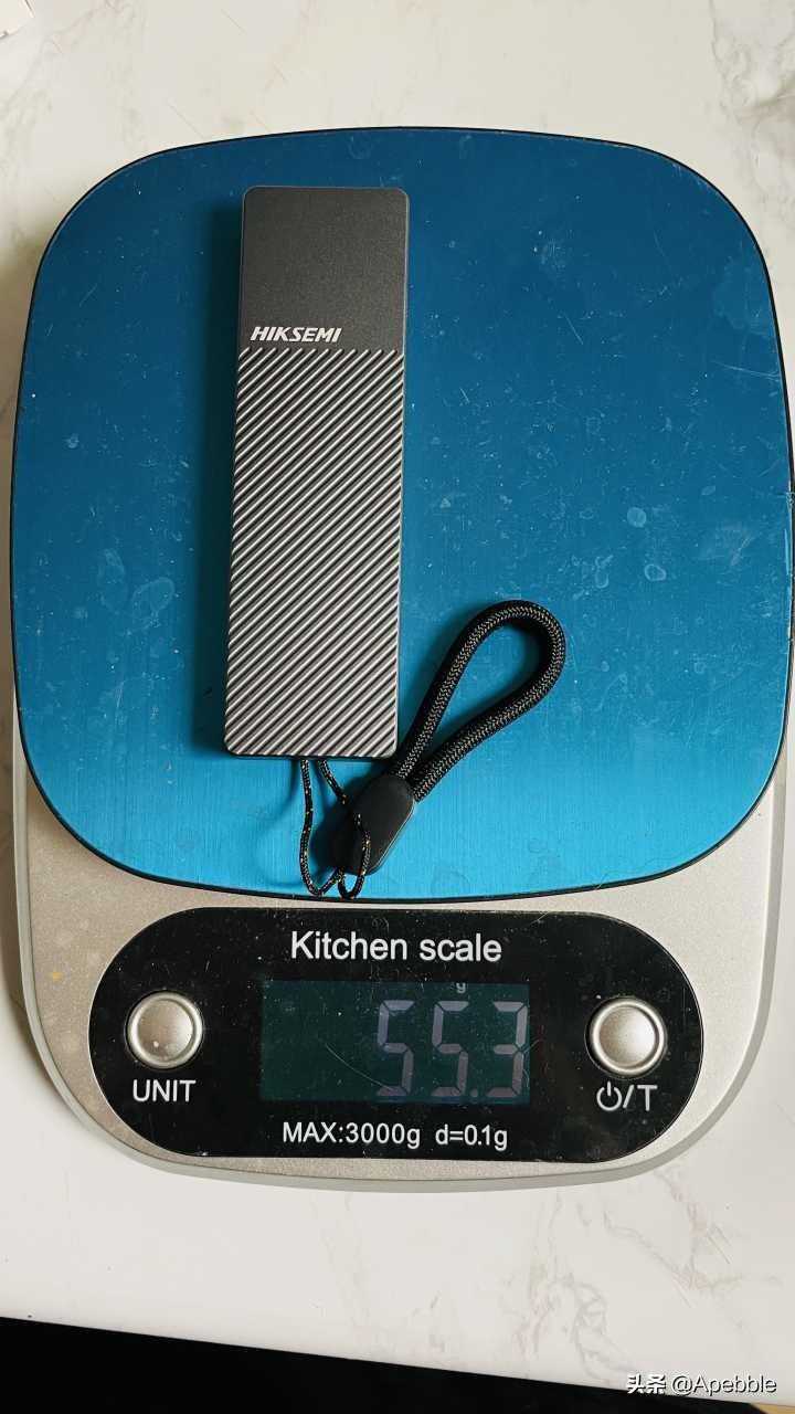 MD202装上硬盘和挂绳整体的重量在55g左右