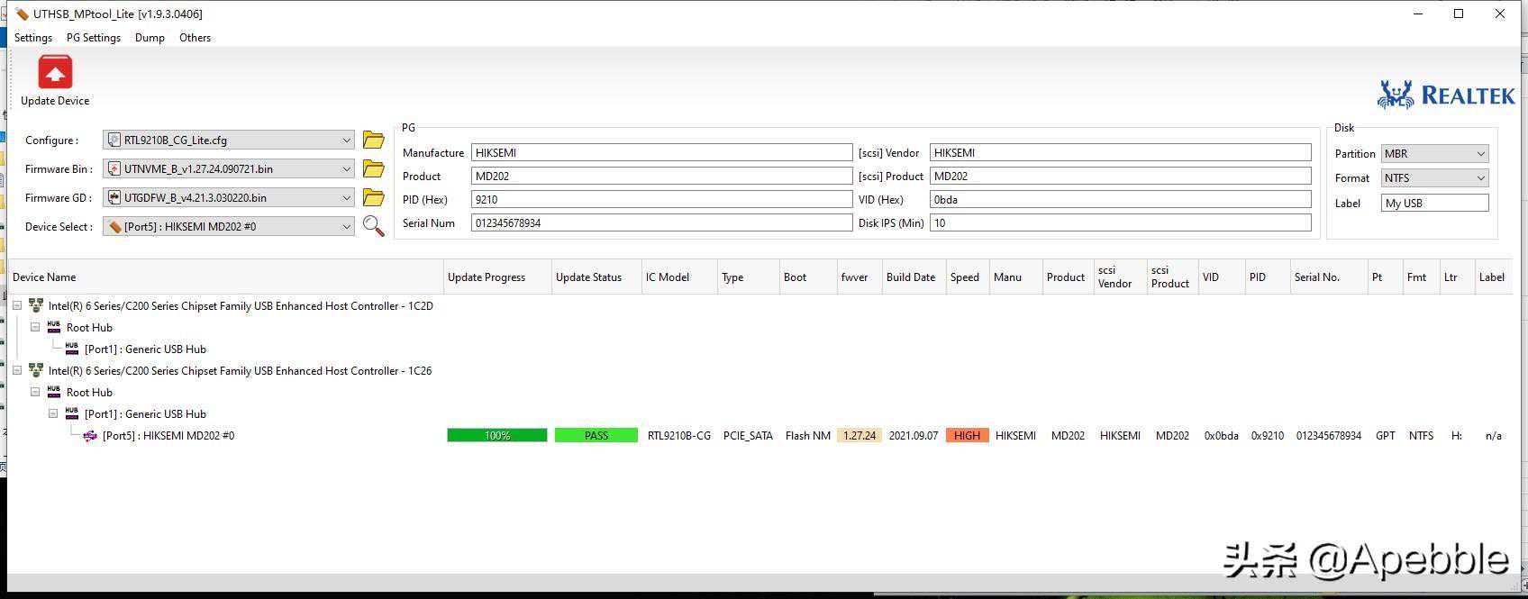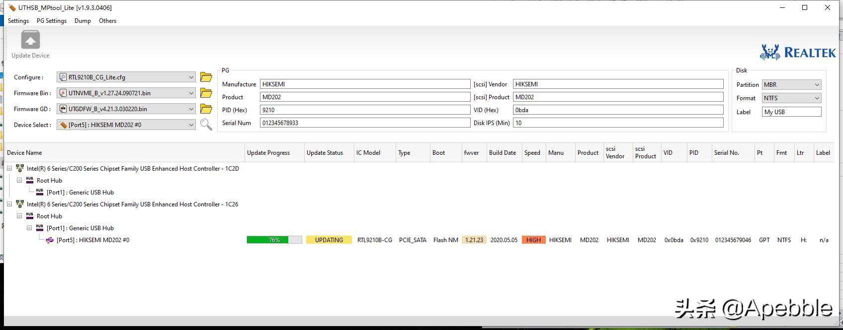 之前有提到RTL9210存在的问题已经通过更新1.27.24版本固件解决,更新方法也很简单,首先要获取硬盘更新包(找不到的小伙伴可以找我来获取)