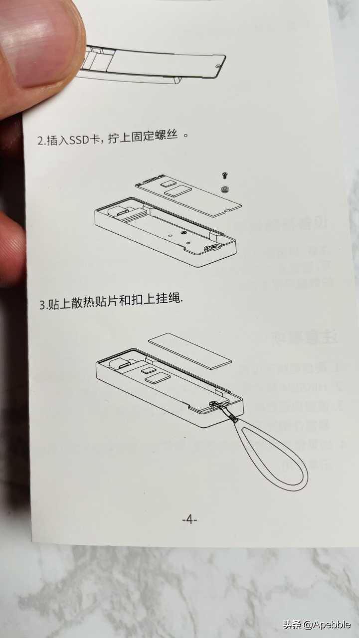 MD202的全家福包括:一个硬盘盒、一条CtoC数据线,一条CtoA数据线、一个挂绳、一个螺丝刀、一个散热贴、两包螺丝(外壳和内部硬盘固定)