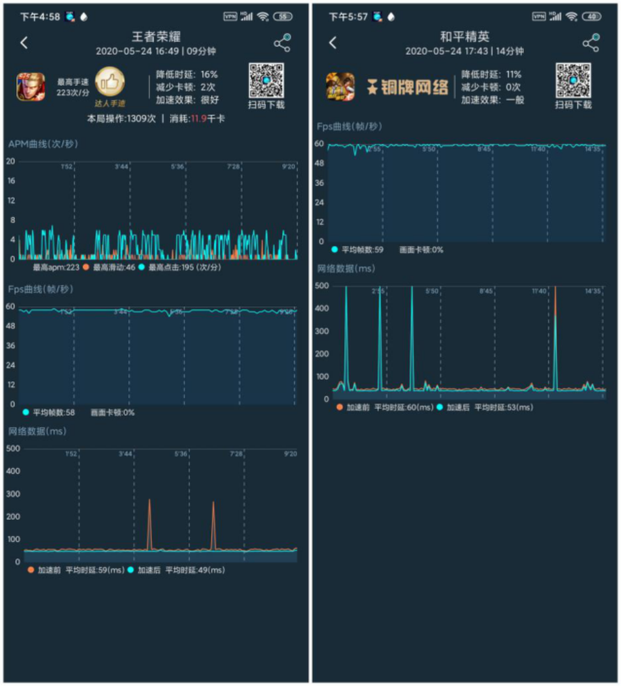 使用Redmi10XPro试玩《王者荣耀》和《和平精英》两款游戏,均能够以流畅稳定的画质运行,其中《王者荣耀》的平均帧率为58帧、《和平精英》的平均帧率为59帧。