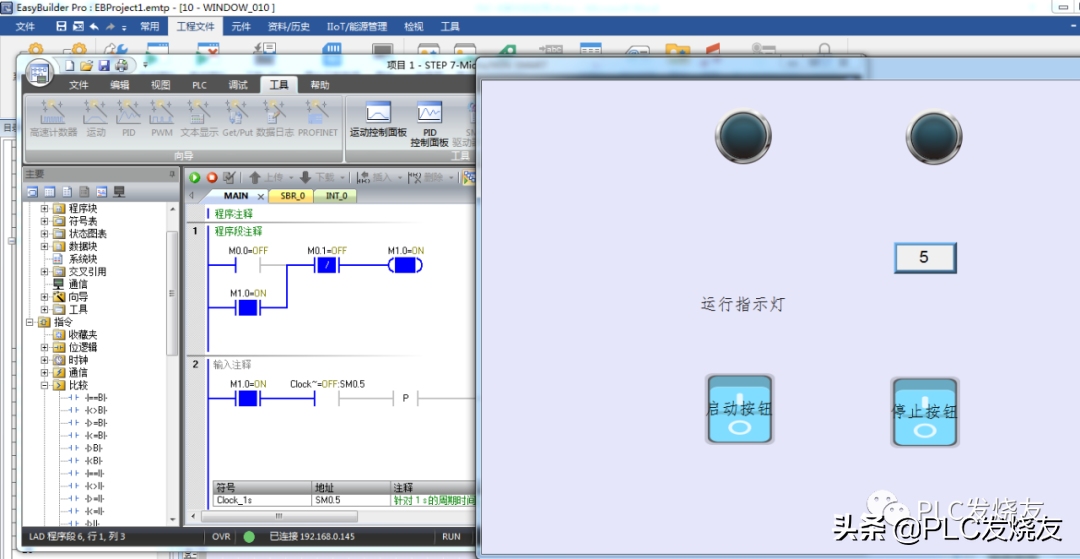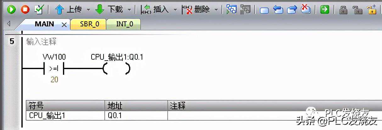 程序段五:用比较指令大于等于整数来比较VW100数值10来触发线圈。