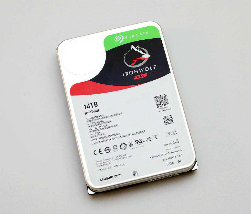 希捷酷狼NAS盘标志性的“狼头”,在HDD系列的划分上,希捷确实花了些心思,不得不说,就目前来看,以动物为LOGO或品牌名的企业或产品,确实辨识度都很高,也很容易被记住,这方面可以看看各大电商平台就懂了。14TB的酷狼,沉甸甸的手感,相当的瓷实,毕竟在厚度没变的情况下,它可是足足塞了8张碟片进去,单碟的容量也达到了1.75TB,想想10年前自己还在用的电脑硬盘……就算放在如今,平常我们用的还是以2TB硬盘为主,单单它一块,就顶了7块,对于2Bay的NAS来讲,这容量基本也是够日常使用了,在盘位不变的情况下,容量的提升带来了更大的便捷和灵活性。在外观方面我觉得14TB的酷狼,并没有此前使用过的8TB酷狼Pro好看。