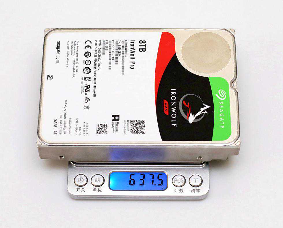 8TB的酷狼Pro重约637.5g。