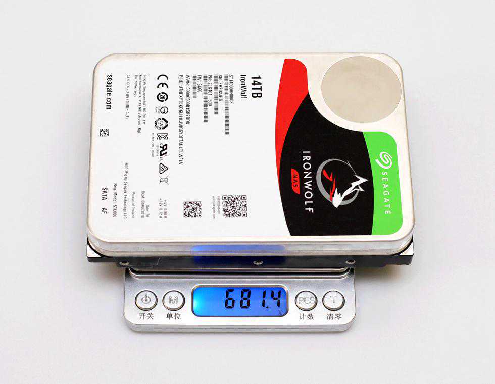 14TB的酷狼重约681.4g,相比之下,14TB的酷狼绝对是重量级的选手。
