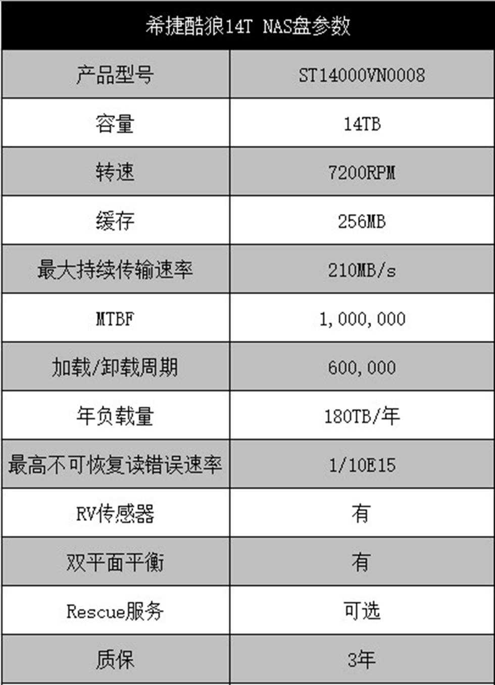 测试前先来看下酷狼14TB的相应参数。