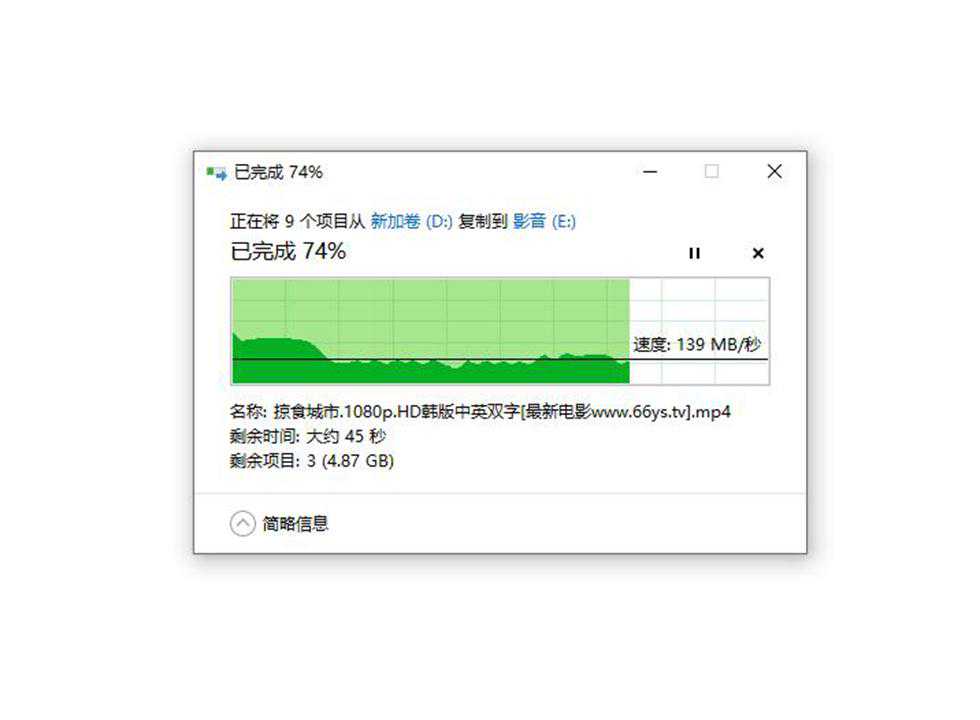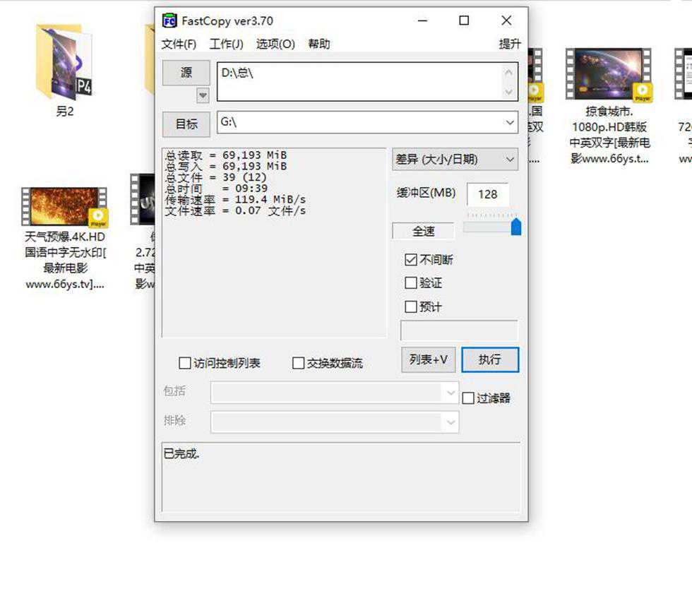在FC拷贝测试中,67.6G的影音文档,平均的读取速度达到了119.4MB/s。