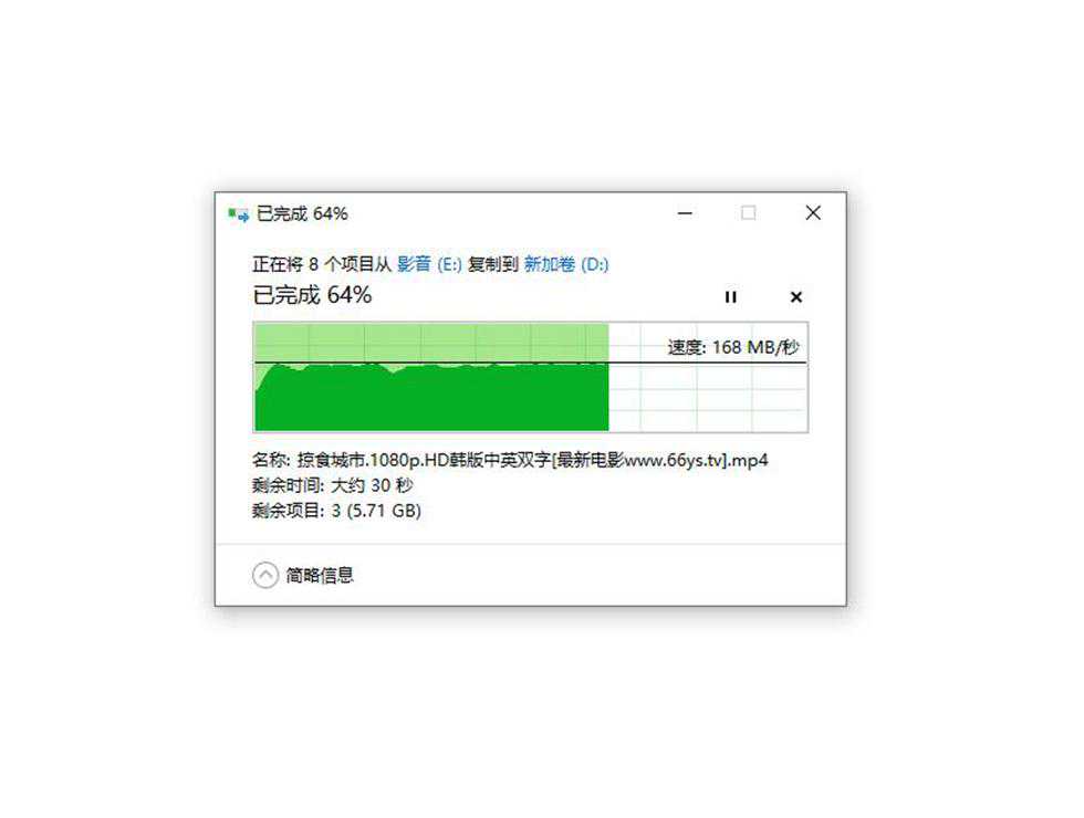 零散文件实际写入测试中,速度基本维持在168MB/s左右。