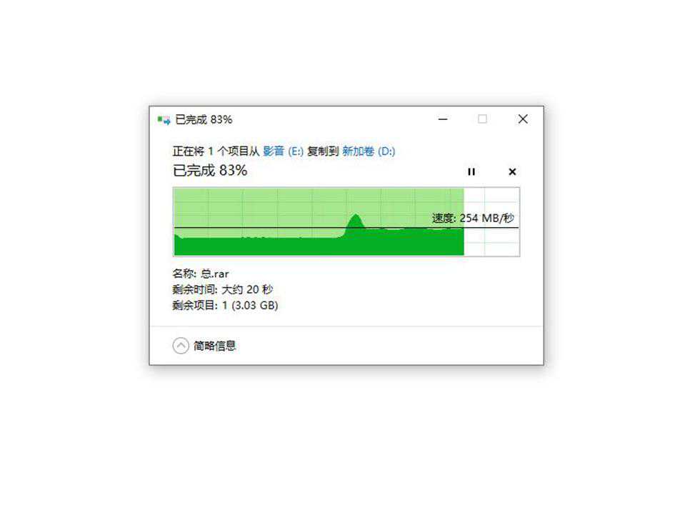 压缩文件的写入速度104MB/s。