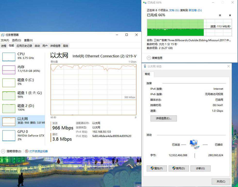 受限于千兆设备的传输速率,零散文件实际的写入速度稳定在113MB/s,这已经是千兆的极限了。