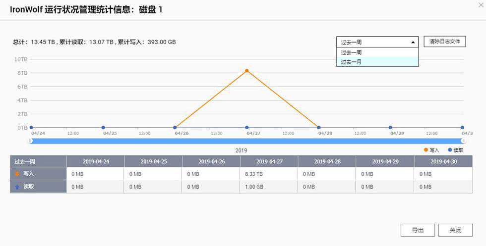 IronWolf运行状况中可以看到每块盘,每天的负载情况,最多可以追溯一个月的数据。