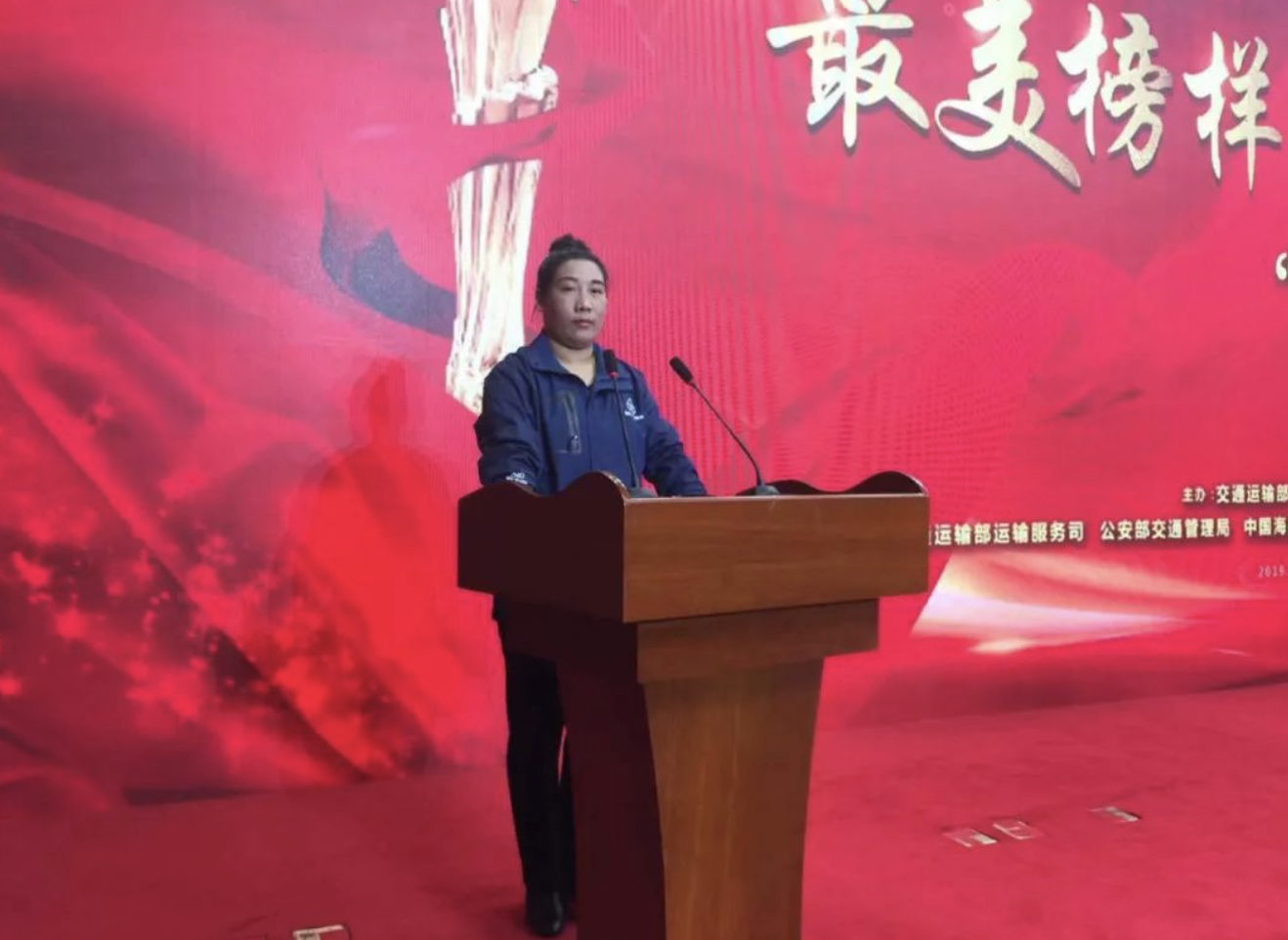 2018年交通部评选“十大最美货车司机”,图片中的女性是获奖者中唯一的女性卡车司机。她独自驾驶13米的半挂车,往来于山东和新疆之间,非常了不起。图片由原文作者马丹提供并授权