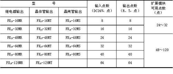 FX2N系列17种基本单元(CPU单元或主机单元)见表2。