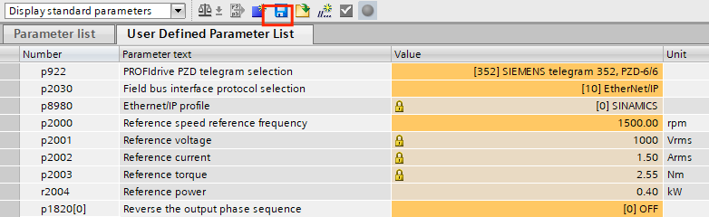 选中参数-参数视图-P2030选择[10]EntherNet/IP