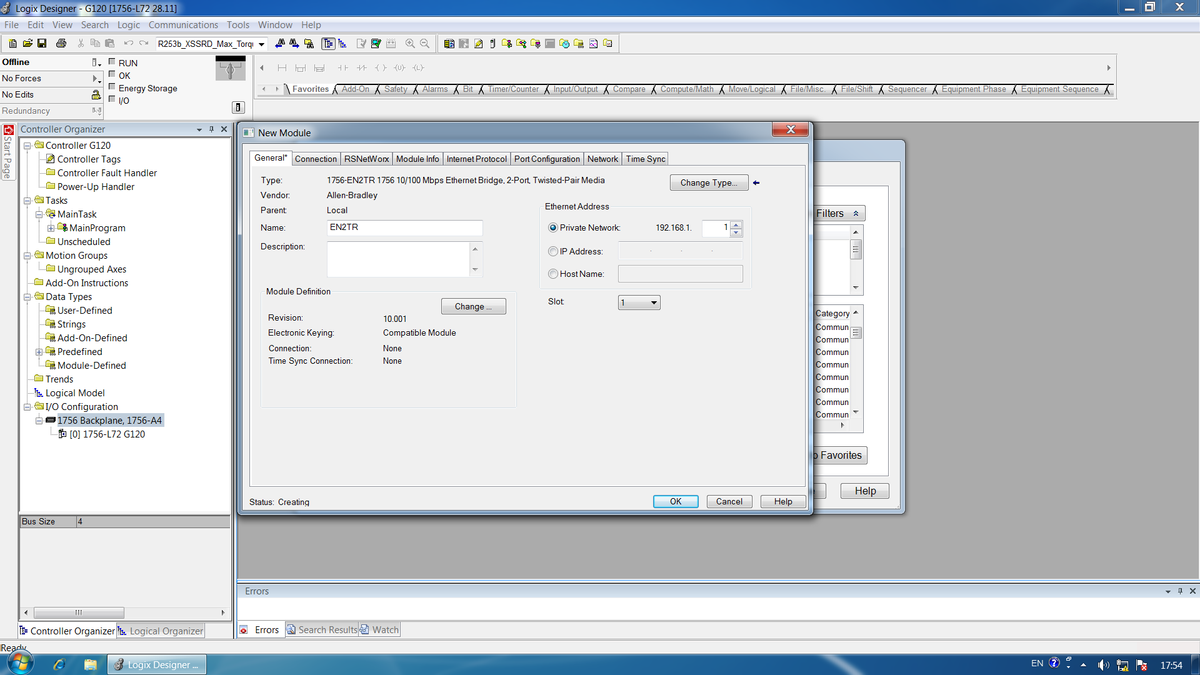 选择1756-EN2TR,点Create创建。