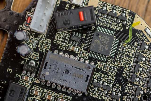 另一部位于鼠标外壳上,与微动直接接触,官方称其为浮动挂台装置。浮动挂台装置+转轴装置就构成了KBS二代按键技术,并以此用于消除按键空行程隐患。