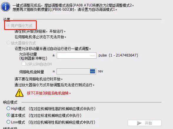 直接在两轴同步运行模式下进行伺服调整,一般使用用户指令模式进行整定(测试运行时,同步会断开所以需要通过程序来控制运行),如果使用放大器指令调整,由于这种方式调整运动速度不可控,同步效果不佳时容易卡死。如果在调整过程中速度较快就会卡,速度太慢又无法整定完成。这个时候就需要第二种方法。
