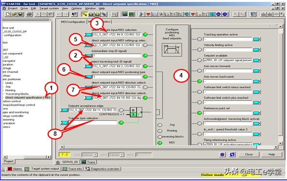 •直接设定值输入/手动设定值输入(DirectSetpointInput/MDI):目标位置及运行速度可由上位机实时控制。