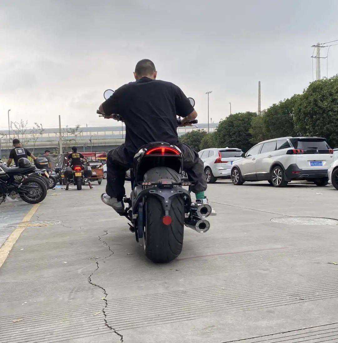再说操控,这车的座高690,我身高167,全脚掌着地(久违的踏实感,以前骑z900只有前脚掌着地),现场有个女生160左右,骑上去也没压力,基本能3/2脚掌着地。别看500多斤的家伙,骑上去特别轻,和我之前的z900差不多。但是推行还是有点重,可以练臂力。