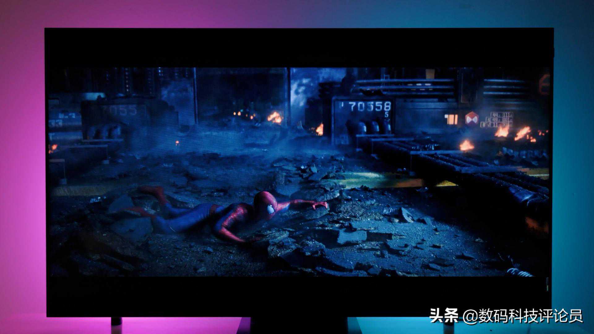 HDR片源下,高亮度下依然有着浓郁艳丽的色彩,并且得益于强大的光控能力,黑场也看不到漏光的情况,可见TCL的光控能力非常到位。