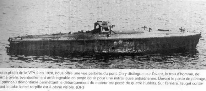 在进一步的测试中,尽管小型的VTA1型配备的1500马力洛林发动机使她能够达到37节的航速,但由于船体过小,其只能在船体后部以滑落式的方式配备一枚450毫米鱼雷,也缺乏升级潜力,因此法国海军最终决定不采用小型的VTA1型,转而集中精力发展大型的VTB1型,全部4艘VTA1型艇均在30年代被废弃。