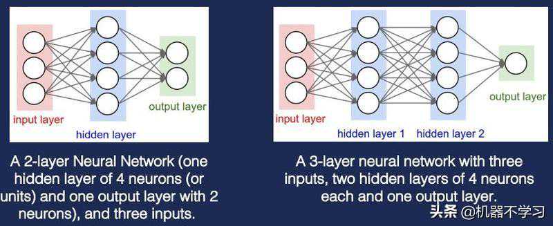 深度学习指的就是深度神经网络。左边是一个简单的两层神经网络,看起来是三层,但一般不算输入层。神经网络分三种不同的层:inputlayer,hiddenlayer,outputlayer。inputlayer一般是获取用户各种输入;hiddenlayer做各种不同的运算;outputlayer产生结果。那神经网络和SVM、逻辑回归有什么关系?其实逻辑回归和SVM是一种特殊的单层神经网络。
