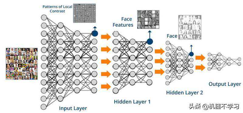 上图是简单的神经网络架构,实际上真实的神经网络会远比上面复杂。下图是人脸检测的一个神经网络。hiddenlayer在进行处理时要区分不同的变量,不同变量针对不同方面的问题。最后通过outputlayer汇总。