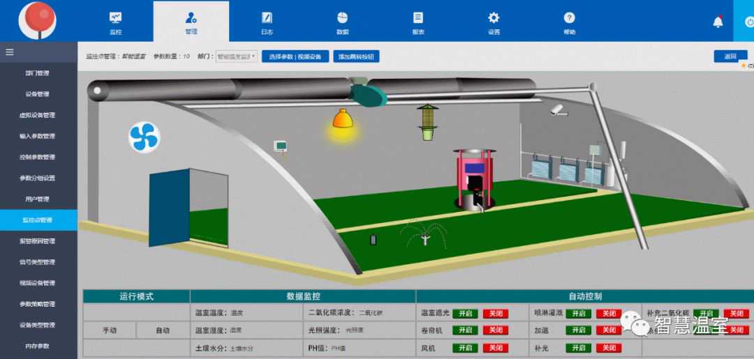 2.温室气候因子是作物环境的重要组成部分。不同因子之间相互关联:光照会影响温室气温,气温会影响湿度等。不同设备使相应的因子变化,其他因子也将“联动”。自动化系统需要掌握各种设备的功能,根据种植者的设定,做出控制策略,并动用相应设备尽可能满足作物的环境需求。