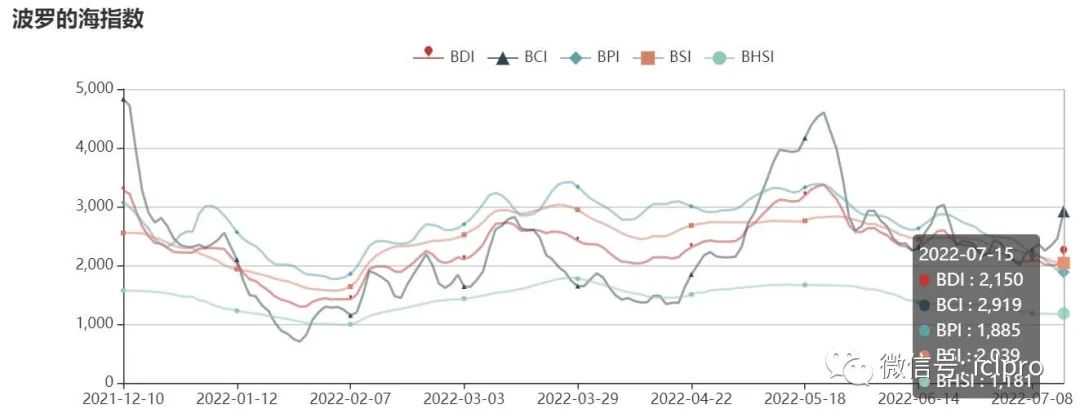 3.截止07月15日波罗的海指数(BDI)为2150,同比上周上升4.23%,开普敦船型涨幅较大