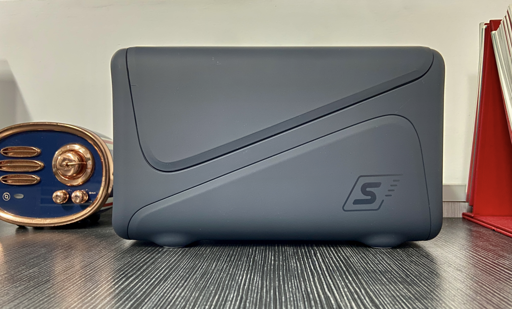外观相比它背后的这一堆碟片来说还是非常小巧的,表面采用了磨砂亲肤材质不容易沾指纹。采用了纯色设计,极空间Z2S一共有七种颜色,因为家里装修偏中式,所以我购买的是天空灰,和家具颜色不冲突。