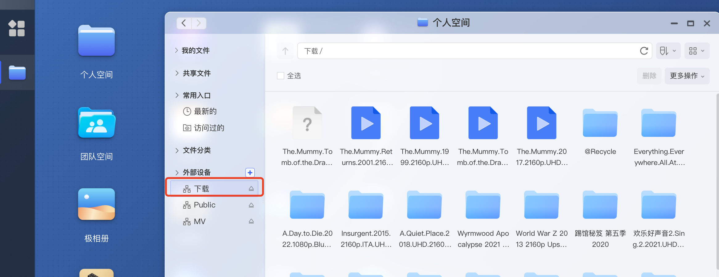 录入后就可以选择我们自己NAS里的文件夹了,最后就会显示在外部设备这里