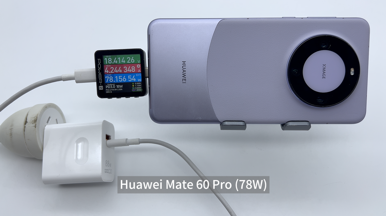 为HuaweiMate60Pro充电,使用POWER-ZKM003C测试仪读取到的功率为18.41。
