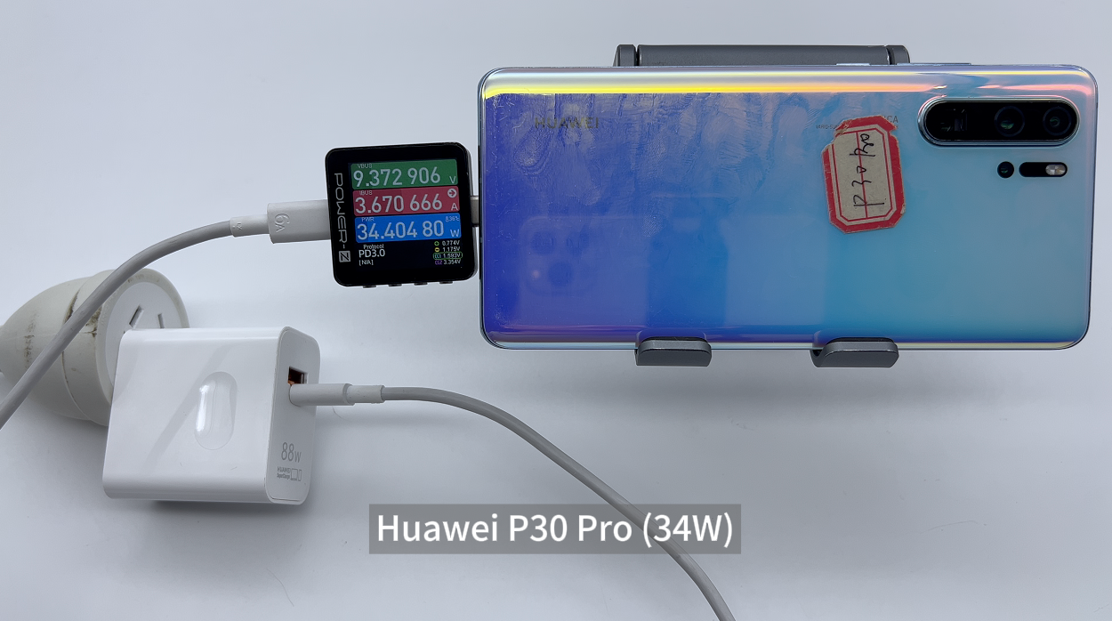 为HuaweiP40Pro充电,使用POWER-ZKM003C测试仪读取到的功率为9.34。