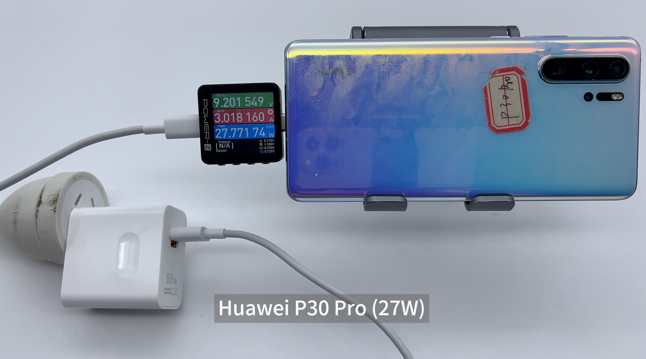为HuaweiP30Pro充电,使用POWER-ZKM003C测试仪读取到的功率为9.20。