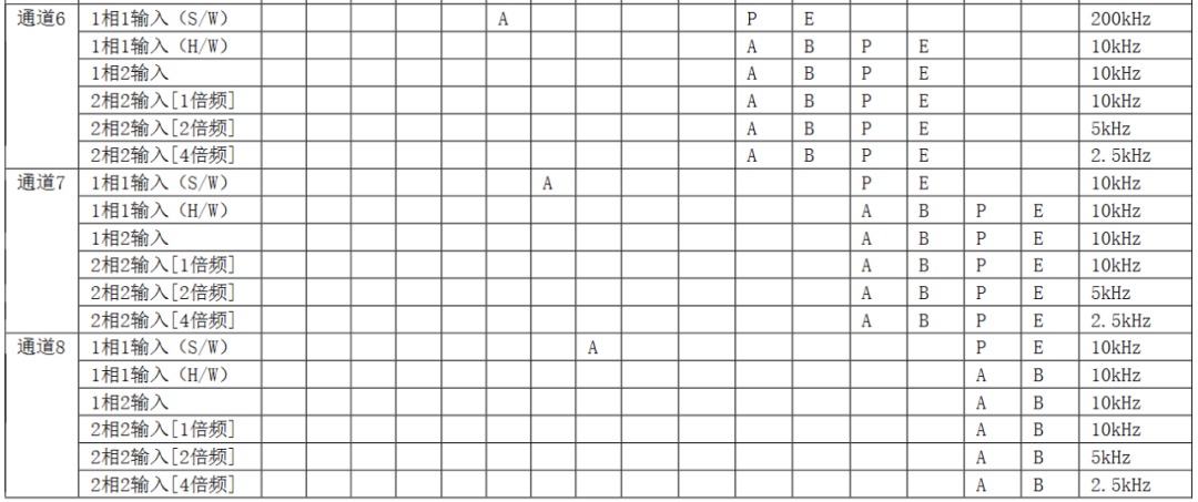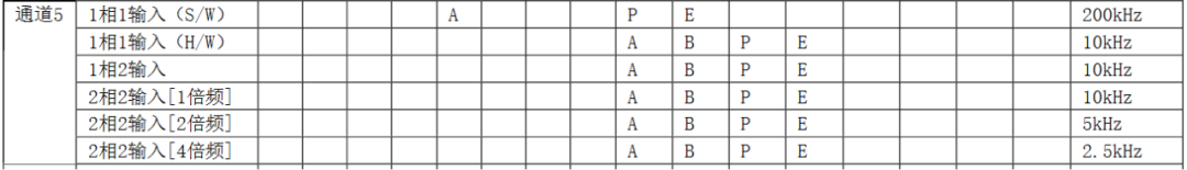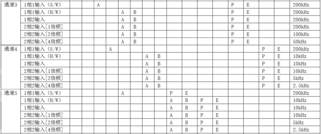 A:A相输入、B:B相输入、P:外部预置输入、E:外部使能输入