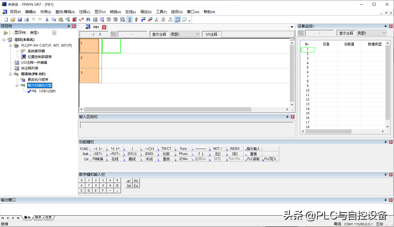 松下PLC编程软件FPWINGR7操作简介一、FPWINGR7编程软件程序块(PB)的种类1、初始执行型程序(FP7机型支持):仅在第一次扫描时执行的程序。2、每次扫描执行型程序(全机型支持):在PL......