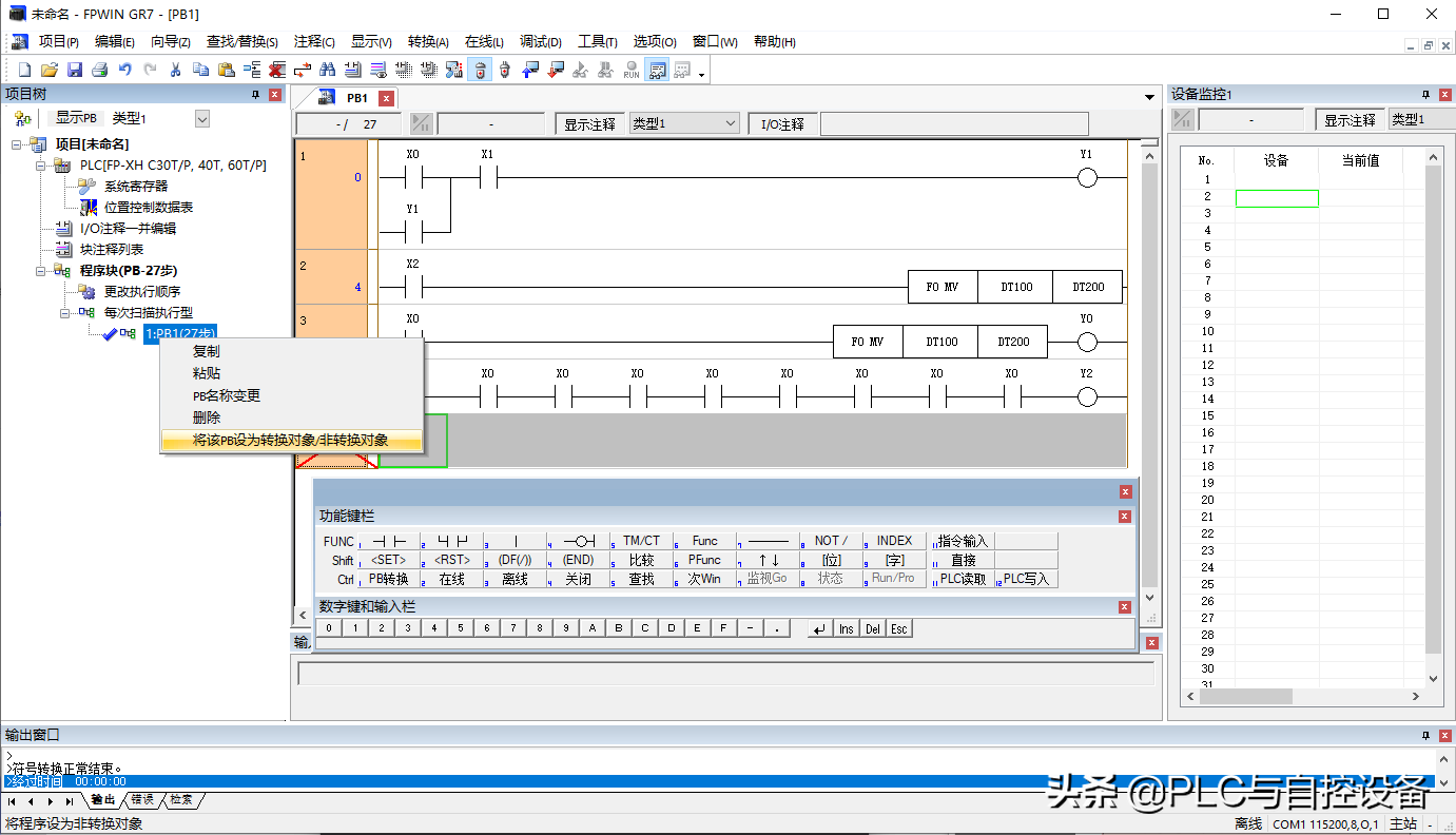 PB转换是不同程序块分别独立转换,当前激活程序块下的程序转换。