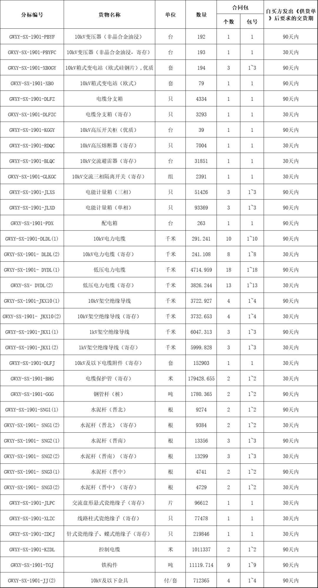 国网山西省电力公司2019年第一次配网物资协议库存招标采购
