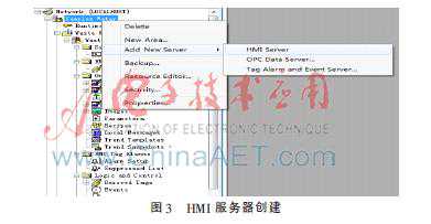 在每个域中可以创建一个HMI服务器以及多个数据服务器,HMI服务器的创建如图3所示。